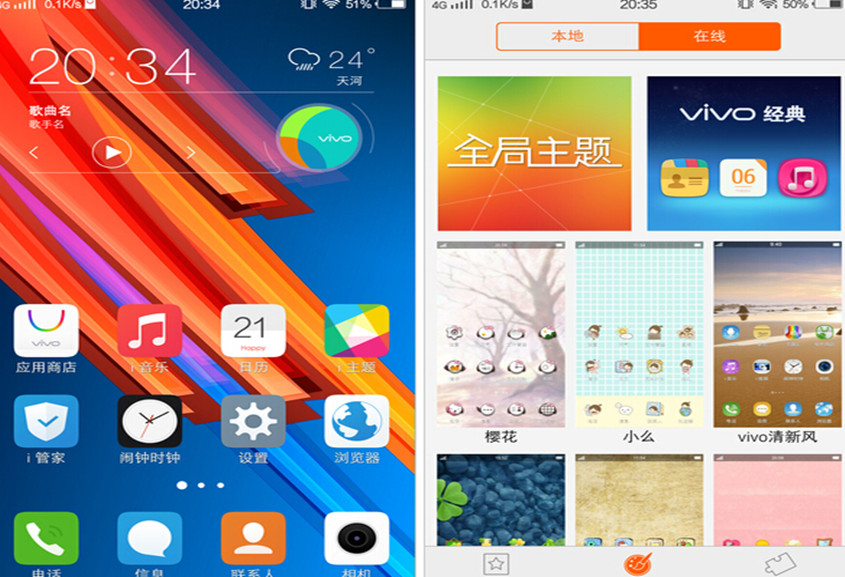 OPPO R7的屏幕材质为AMOLED,分辨率为1920×1080像素,像素密度为445ppi,画质细腻,色彩还原准确度比较高,可视角度接近180°,小角度观看没有出现偏色、发白的问题,屏幕偏向于暖色调,有一种发黄的感觉,没有冷色调屏幕那种冷艳感。OPPO R7采用的是基于Andriod 4.4的ColorOS 2.1系统,系统运行流畅,具备一定的动画效果,有很多特效提供给用户。